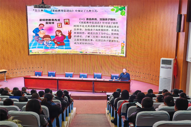县机关工委秘书长以《学习家庭教育促进法、做新时代的好家长》为题,结合生动事例,深入浅出地解读了家庭教育促进法颁布的目的和意义,介绍家庭教育促进法中家长教育责任、家教方式方法等内容,帮助广大家长明确在家庭教育中的主体责任,引导广大家长树立“家庭是第一个课堂、家长是第一任老师”的责任意识,努力营造“注重家庭、注重家教、注重家风”的浓厚氛围,促进未成年人健康成长,增进家庭幸福与社会和谐。