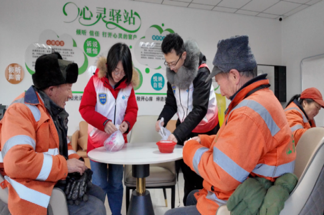 县总工会司机之家、职工之家内暖意融融,工作人员有序为到场人员盛放热粥、送上节日祝福,欢声笑语间,一碗碗热粥温暖了双手,更温暖了人心。同时,美团外卖志愿者与工作人员身着统一服饰,开展上门送粥服务,将温暖精准送达到坚守岗位的一线工作者手中,让未能到场的劳动者也能感受到这份冬日温情与集体牵挂。