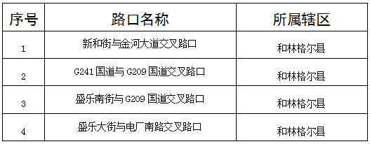 为进一步提升和林格尔县道路交通管理水平,创造良好交通环境,根据《中华人民共和国道路交通安全法》《中华人民共和国道路交通安全法实施条例》、公安部《道路交通安全违法行为处理程序规定》等法律、法规规定,我县对道路交通技术监控系统进行了新建,现已有4处交叉路口共12套交通技术监控系统(电子警察)达到规范要求,2025年10月13日至2025年10月27日进行公示。2025年10月28日正式启用。