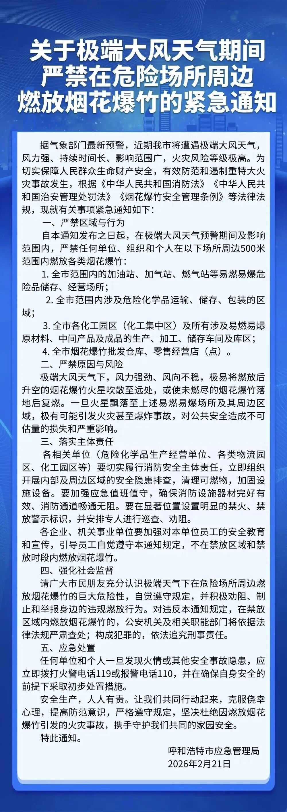 呼和浩特市应急管理局紧急通知!这些地方严禁燃放烟花爆竹
