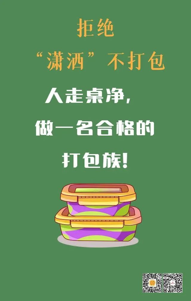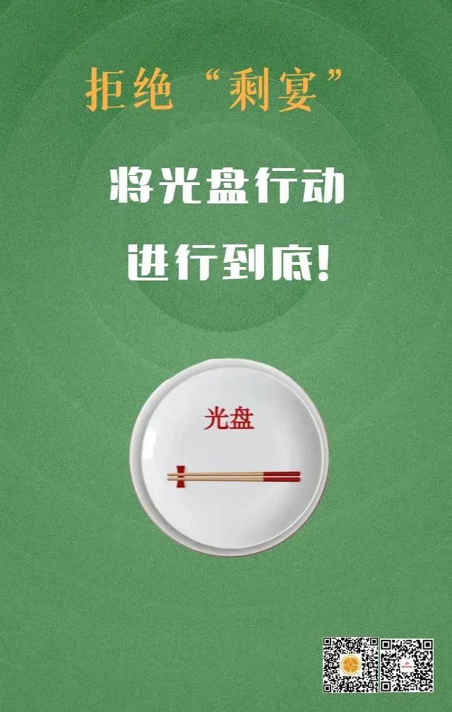 适量消费、餐厅不多点,文明取餐、食堂不多打,勤俭持家、厨房不多做,使“光盘行动”融入到每个人的生活理念中,用实际行动做“文明用餐”的宣传者、实践者、监督者。
